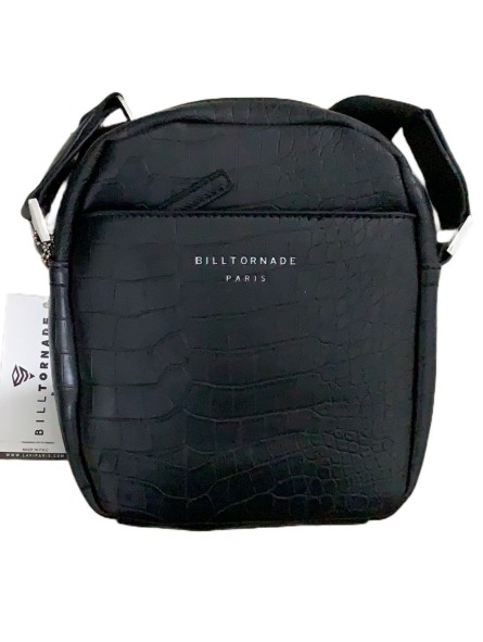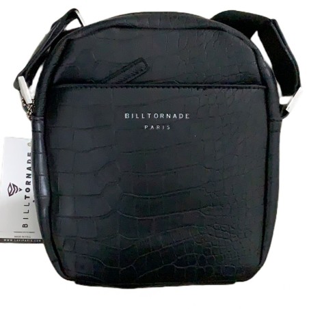 Sacoche croco noire au design texturé, équipée d’une sangle Bill Tornade ajustable. Un accessoire compact, élégant et pensé pour le quotidien, mêlant style urbain et finition premium.
