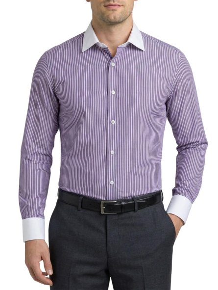 Chemise col blanc à rayures violettes Régular Bill Tornade