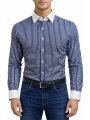 Chemise bleu marine à rayures col blanc Bill Tornade