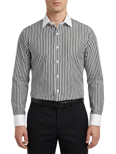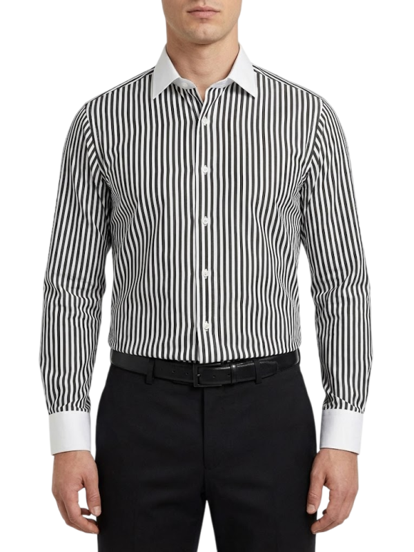Chemise col blanc à rayures noires