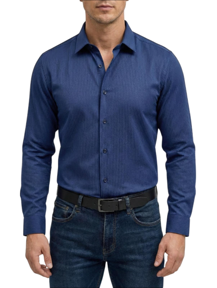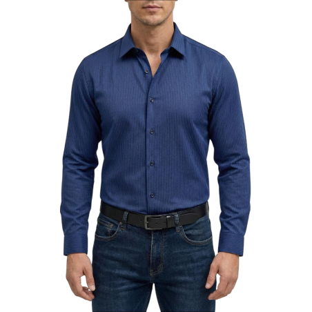 Adoptez un look chic et confortable avec cette chemise bleu nuit à rayures. son design élégant et sa coupe regular fit en font un essentiel du vestiaire masculin, parfait pour une allure soignée en toute occasion.