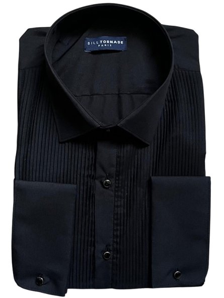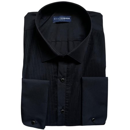 Chemise de cérémonie noire à col de ville signée Bill Tornade Paris. Son col classique apporte une élégance naturelle, tandis que le plastron plissé structure la silhouette. Sa coupe slim souligne le buste sans contrainte. Confectionnée en 80 % coton et 20 % polyester, elle allie confort, souplesse et tenue impeccable. Boutons élégants assortis noirs, style sobre et intemporel pour toutes les grandes occasions.
