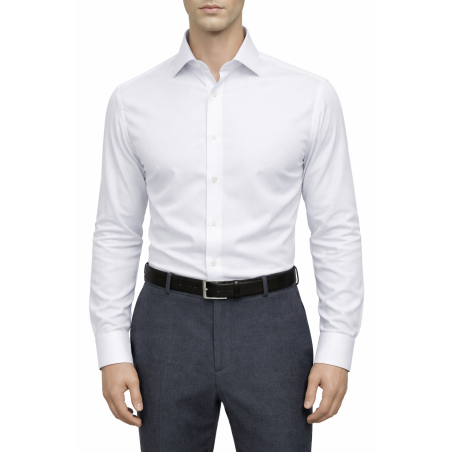 La chemise blanche pour homme est un classique intemporel et essentiel de la garde-robe masculine. Sa coupe slim fit, conçue à partir d'un mélange de coton et de polyester, offre une combinaison parfaite entre confort et style. La couleur blanche est idéale pour un look classique et élégant en toutes occasions. La coupe ajustée flatteuse est plus mince au niveau de la taille et des hanches, tout en étant plus ajustée sur les épaules et la poitrine, offrant un look moderne et intemporel.