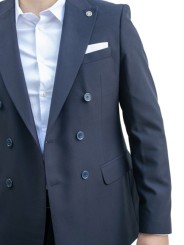 Costume bleu croisé en coupe slim, avec une allure nette et contemporaine. Une pièce élégante qui apporte une présence naturelle, parfaite pour affirmer ton style au quotidien comme lors de moments importants.