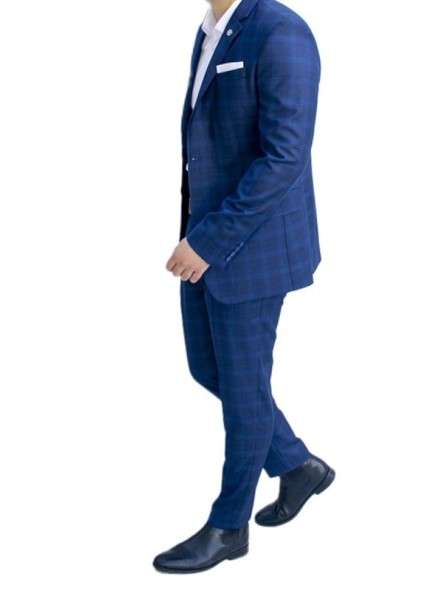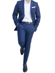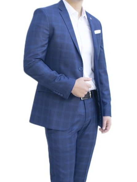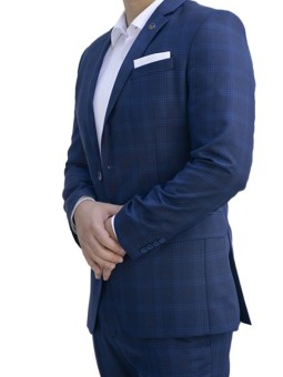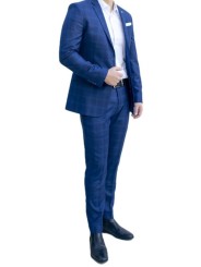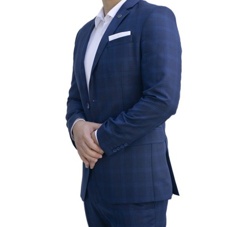 Costume bleu à carreaux élégant et moderne, coupe slim. Une pièce polyvalente et confortable, idéale pour le travail, les cérémonies et les soirées.