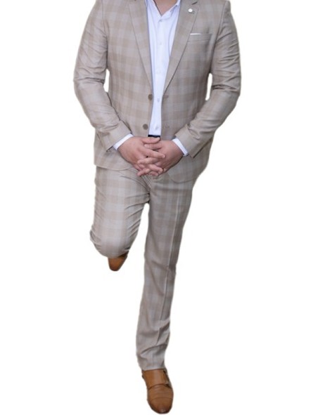 Costume beige à carreaux en coupe slim, avec un motif lumineux et moderne. Une pièce élégante qui apporte une touche de fraîcheur et de caractère à ta tenue, parfaite pour se démarquer avec subtilité.